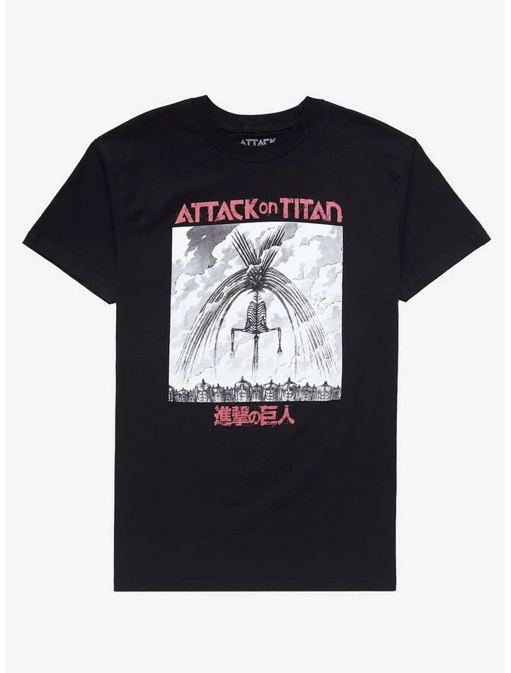 We’re not the only one with “The Rumbling” on replay, right? Rep Attack on Titan‘s final season with this tee, featuring a manga panel of Eren in his final titan form, with the Rumbling beginning under him.ย
