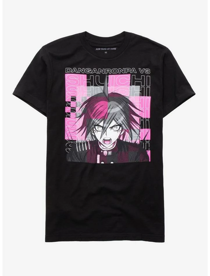 Rep the Ultimate Detective fromΒ Danganronpa V3: Killing Harmony with this black tee. Printed with Shuichi Saihara with his name and the show’s title on the front.