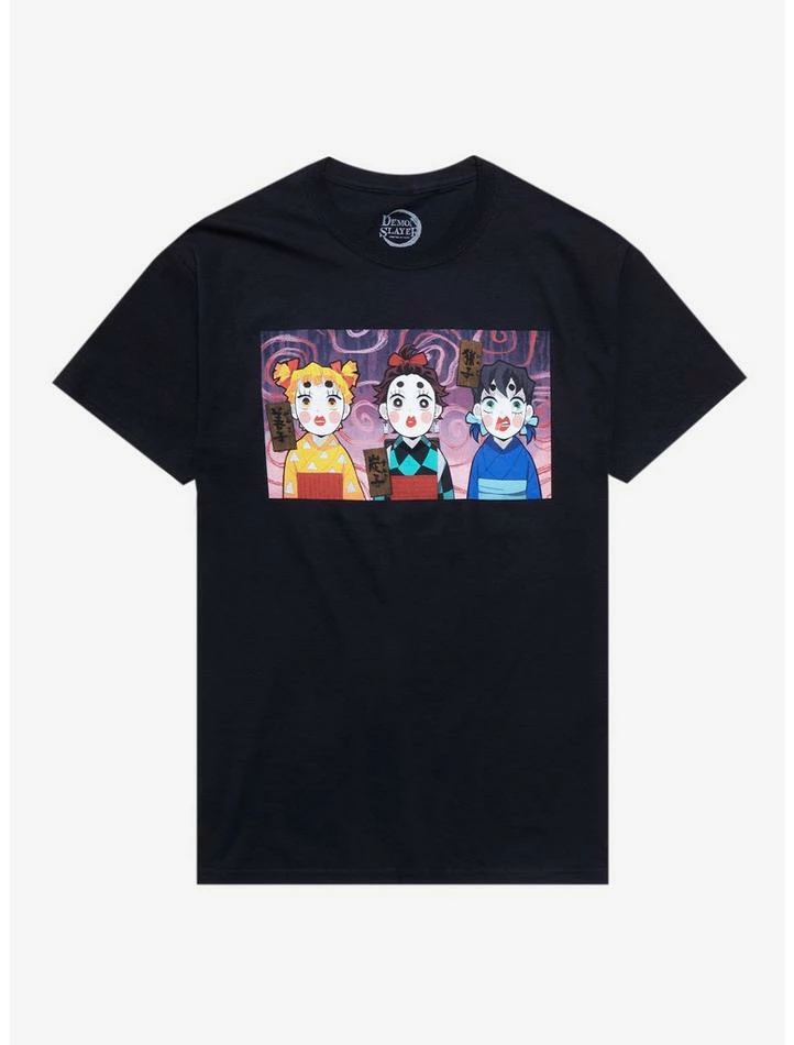 Tanjiro, Inosuke and Zenitsu… er, we mean Sumiko, Inoko and Zenko are here to infiltrate the Entertainment District with the greatest disguise ever! Find the big bad demon lurking around the district with this Demon Slayer: Kimetsu no YaibaΒ tee on, featuring the trio in their girl disguises as a central panel.