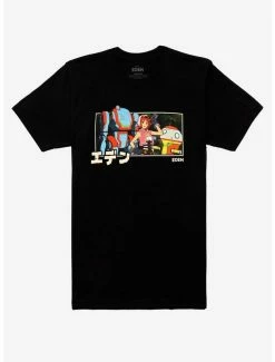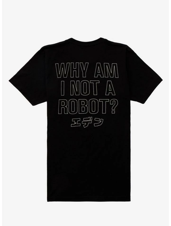 Ready for a world inhabited solely by robots? Grab this black tee from Eden featuring a trio character design.