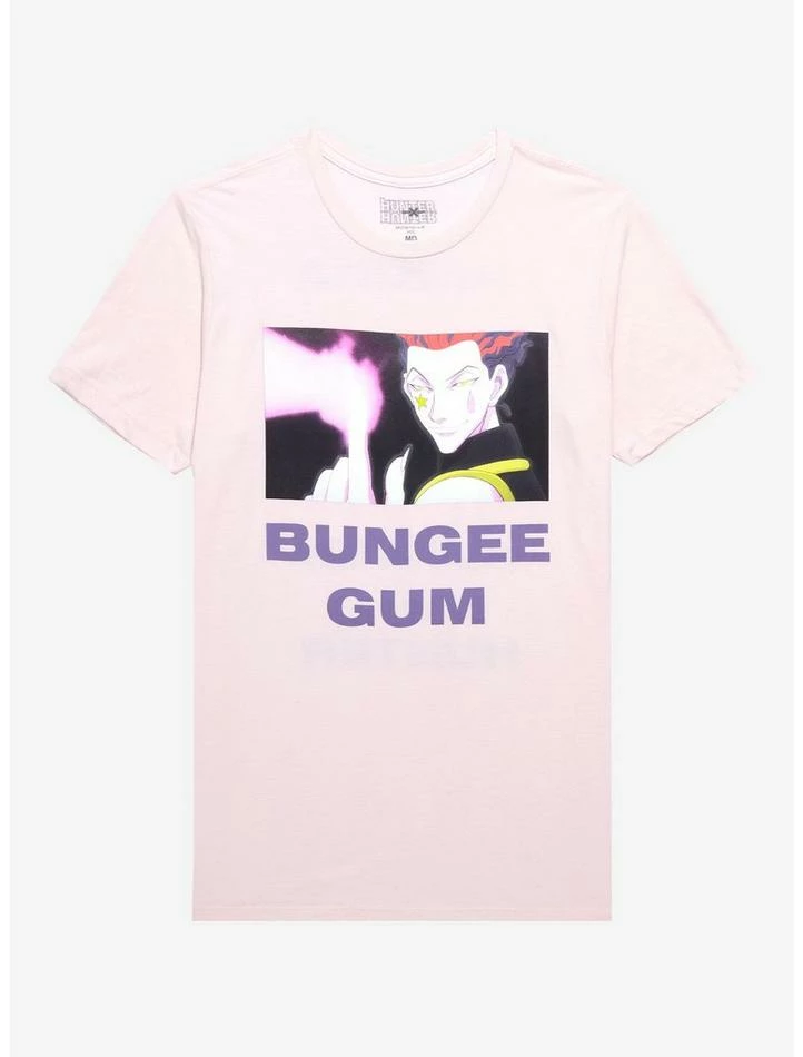 Hisoka only likes two things: fighting powerful opponents and reminding others that Bungee Gum possesses the properties of both rubber and gum. Rep your favorite character from Hunter x Hunter with this tee, featuring a panel of Hisoka and his ability underneath, plus his name and the anime title on the back.