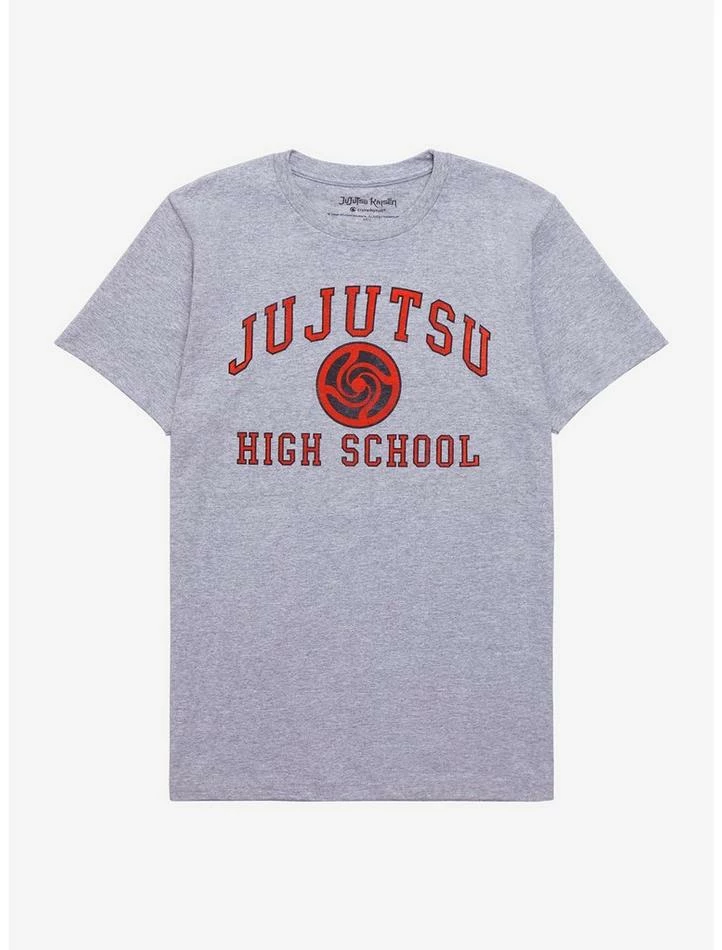 Learning how to be a jujutsu sorcerer? Show some school spirit with this Jujutsu Kaisen tee! Featuring “Jujutsu high school” with the school’s crest in the center.