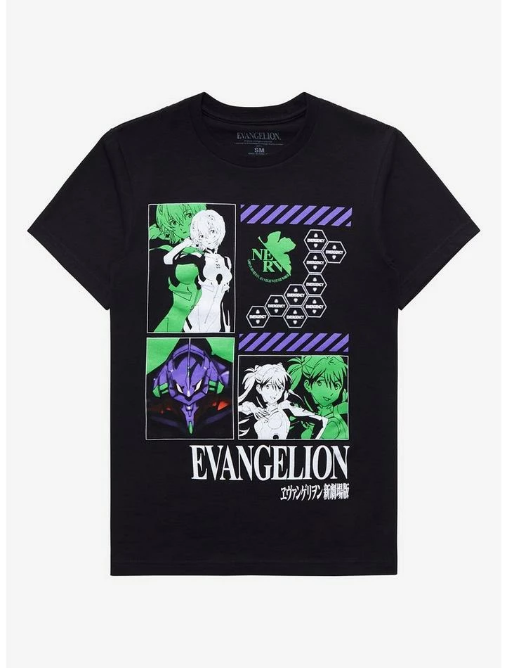 Suit up, pilots! We’re gearing up with this Neon Genesis Evangelion tee. Features grid prints of Rei and Asuka, plus an image of EVA Unit-01 and the anime title underneath.