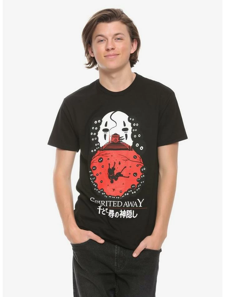 Don’t worry Haku & Chihiro, we are falling for this tee too. This black tee from Studio Ghibli’sย Spirited Away features Haku and Chihiro falling, the Bathhouse, No-Face and lots of Soot Sprites.ย