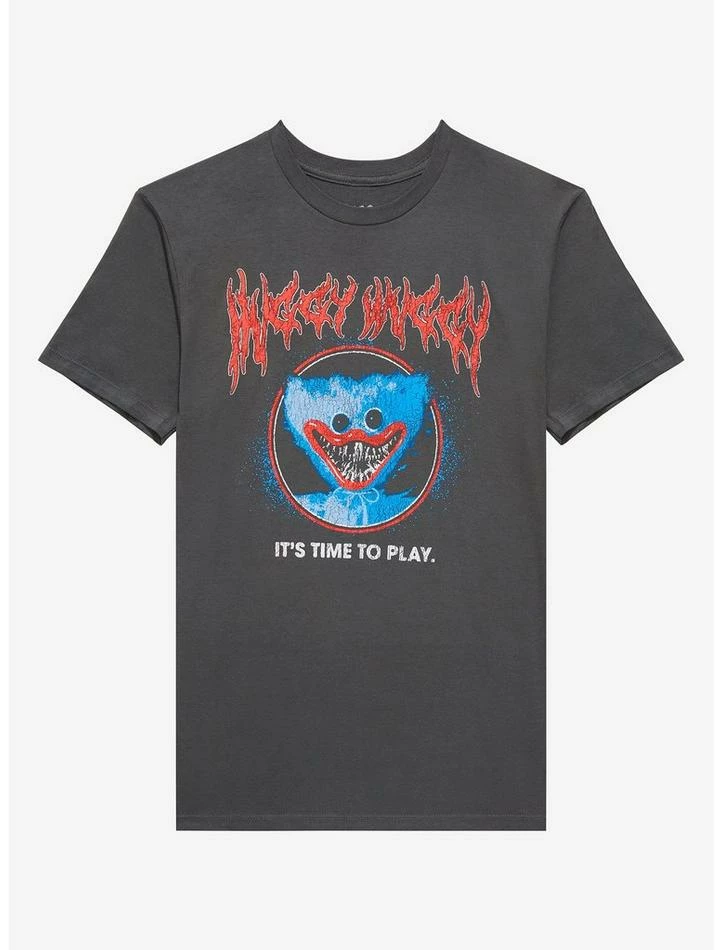 Experiment-1170, aka Huggy Wuggy, wants to play with you. From the game Poppy Playtime, this flesh-eating creature appears on the tee with his name up top in a heavy metal-style font.