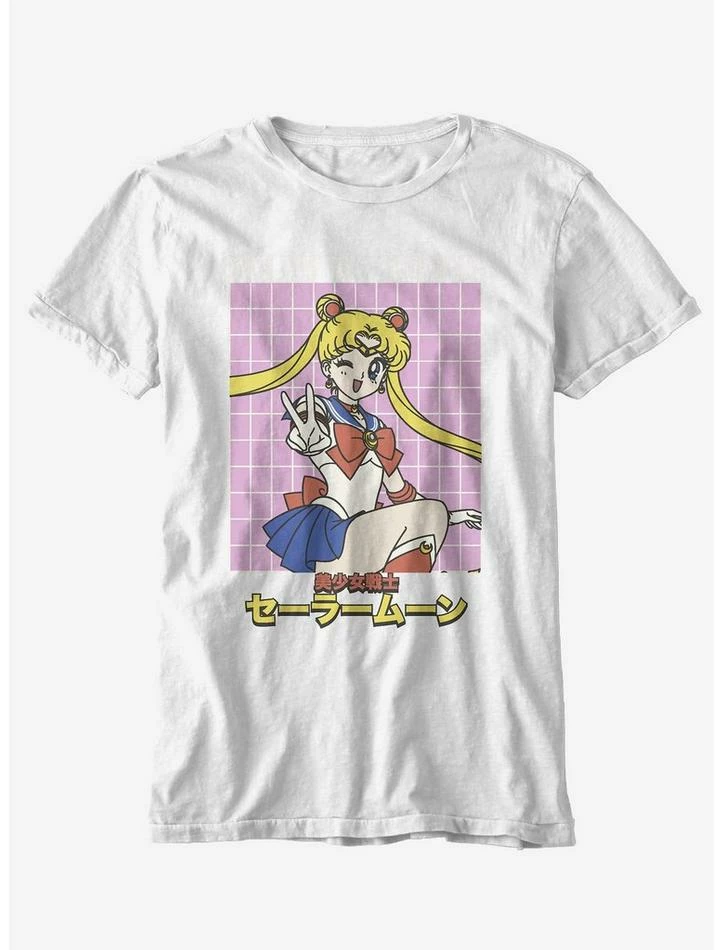 Trust Sailor Moon to fight for love and justice andΒ keep you looking fashionable! Rep your favorite Sailor Guardian with this Sailor Moon gridΒ tee, featuring Usagi in her magical costume and throwing up her signature pose, and the anime title in Japanese underneath her.