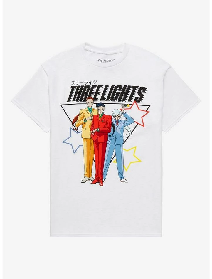 Our favorite band in all of anime? The Three Lights from Sailor Moon. Show your deep-cut fandom for this fictional idol group with this tee showing the trio in flashy suits.
