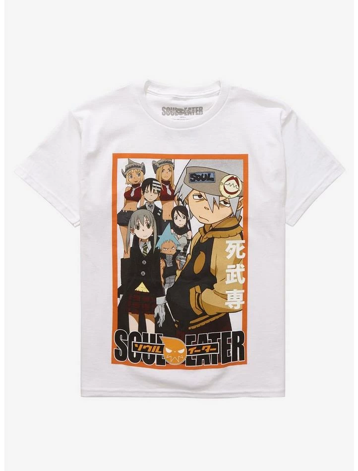 Need another Soul Eater tee? We gotchu! This white tee features all of your favorite characters with the anime’s title in English and Japanese.