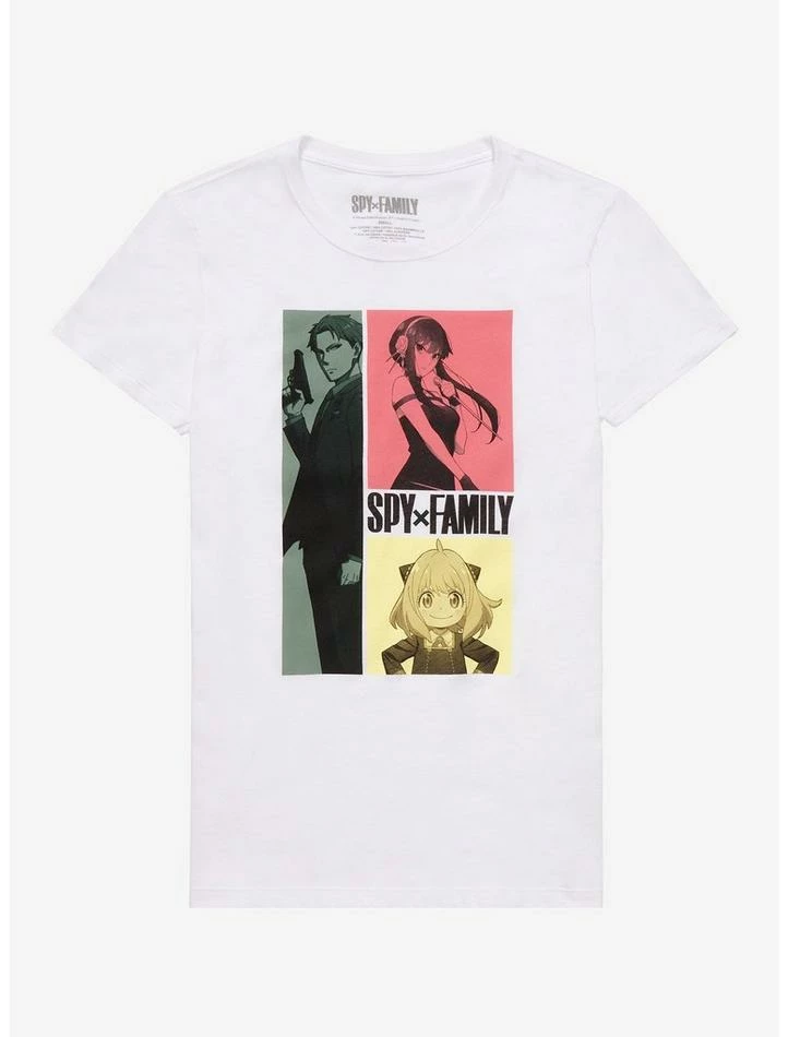 Grab your peanuts and get ready to binge Spy x FamilyΒ with this tee on! This colorful shirt features the elegantΒ Forger family in their own individual panels. Step out with Loid, Yor and Anya on your next ooting… for the sake of world peace!