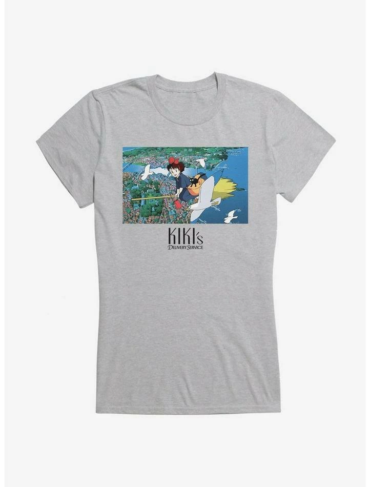 Special delivery! This fitted, lightweight graphic tee — inspired by the Studio Ghibli classic, Kiki’s Delivery Service — features Kiki soaring through the skies with her cat sidekick, Jiji.