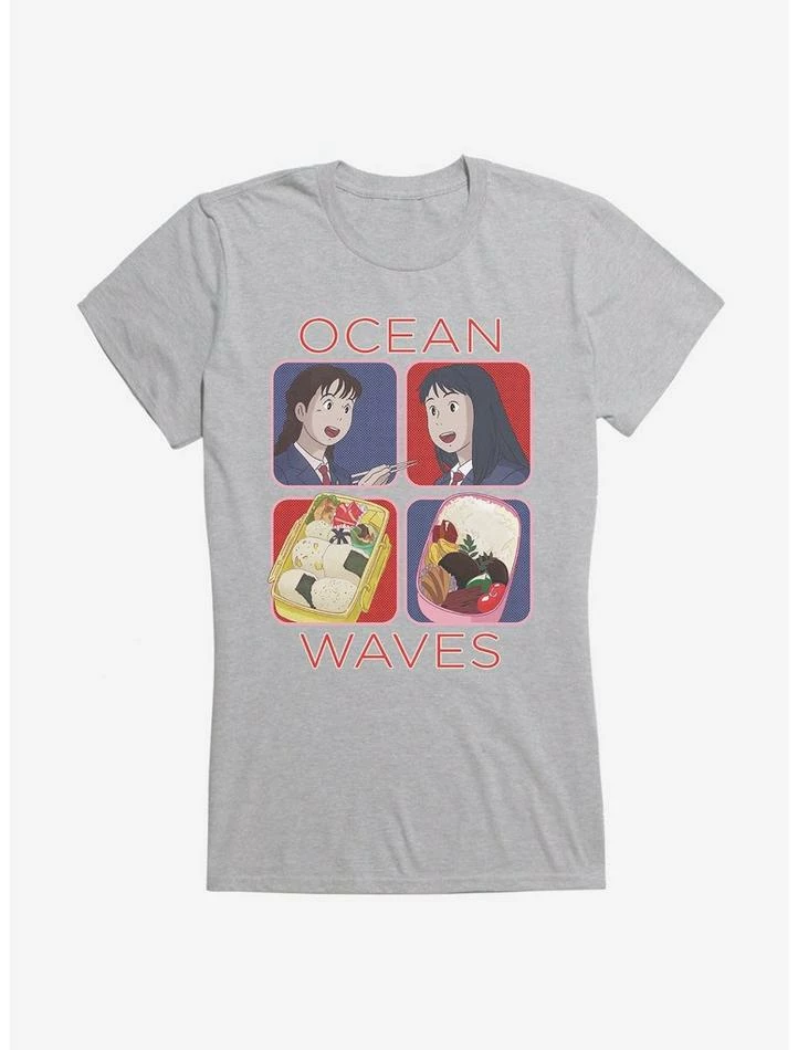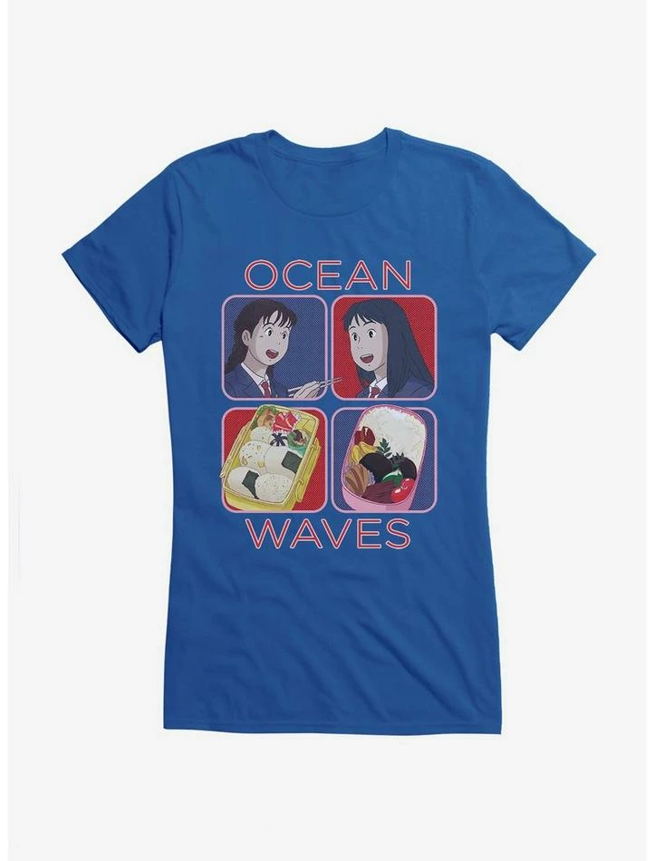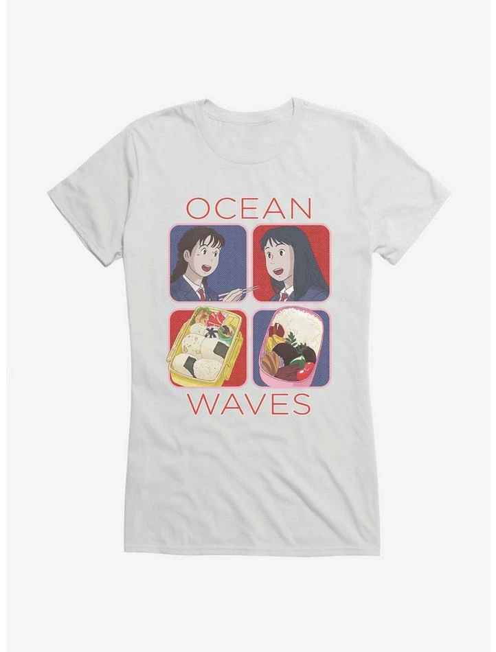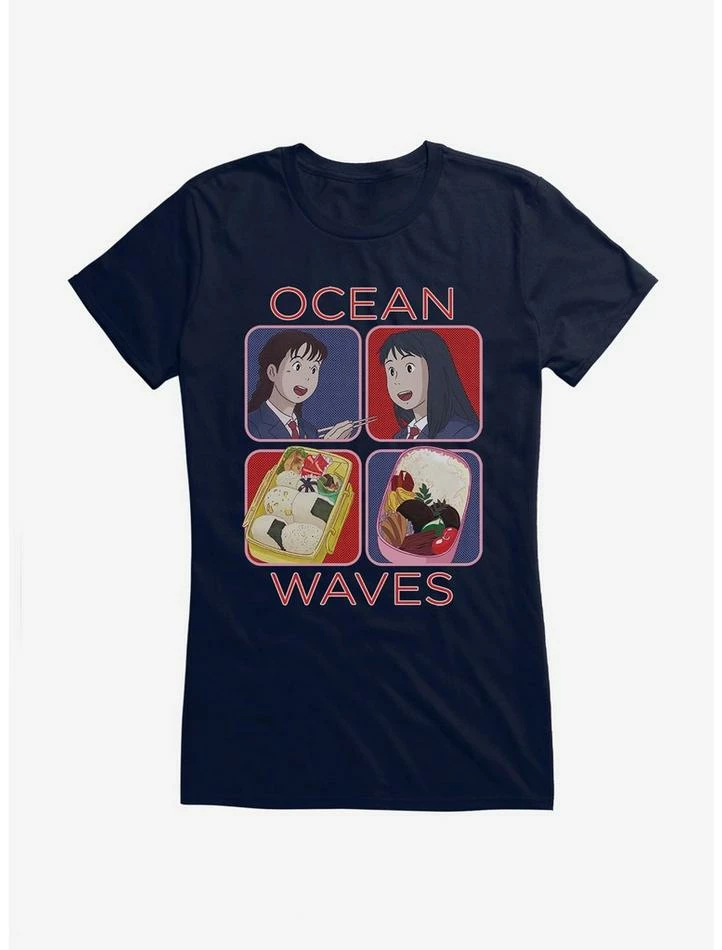 Nom nom nom. This fitted tee from Studio Ghibli’s Ocean Waves has a four square featuring Yumi, Rikako, and their mouthwatering bento boxes!