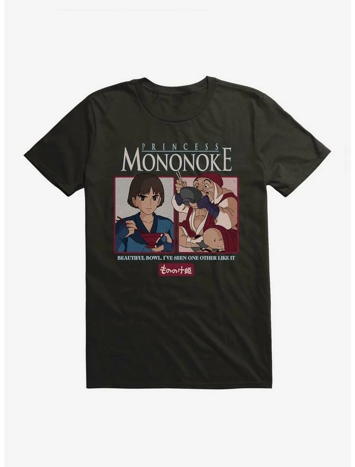 “Beautiful bowl, I’ve seen one other like it.” This Studio Ghibli tee takes inspiration from the scene in Princess Mononoke where Ashitaka and Jigo share a meal.