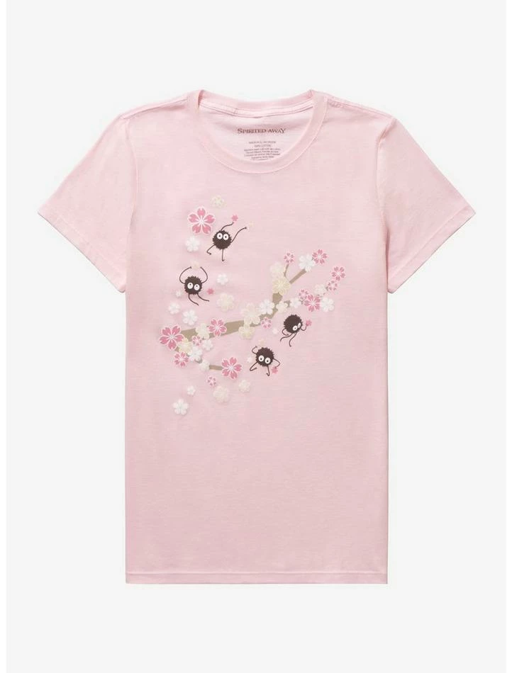 Spring into the new season with some fresh Studio Ghibli tees! Channel some of the Spirit Realm with this pink tee, featuring the Soot Sprites from Spirited AwayΒ playing among some cherry blossoms.