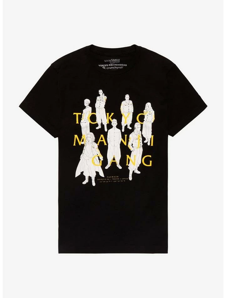 Joining up with Toman? You’ll need to get familiar with the commanders and captains! This Tokyo RevengersΒ tee should help, featuring Commander Mikey and Vice Commander Draken, along with division captains Takemichi, Baji, Mitsuya, Pah-chin and Mucho all in black & white with yellow detailing throughout.