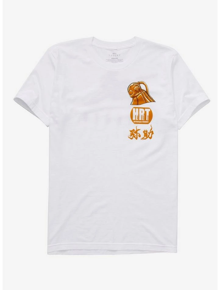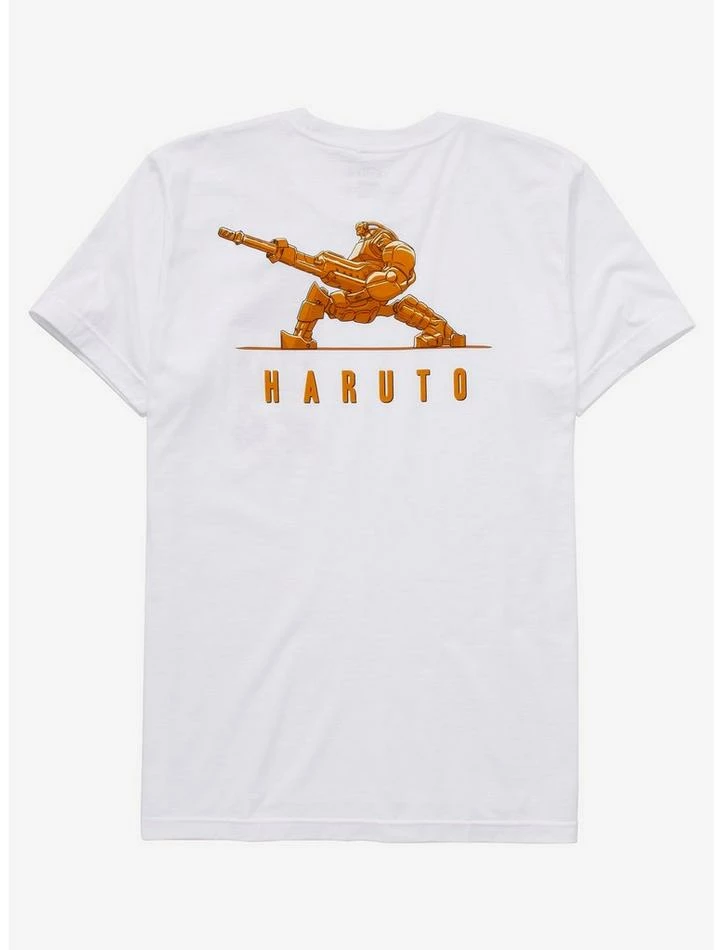 Everyone loves a good mecha, right? This shirt from Yasuke features Haruto in an orange color scheme. The front depicts a bust of Haruto above Japanese text and his technical identification, “HRT Prototype 00001.” The back depicts a fullbody image of Haruto positioned above text of his name.