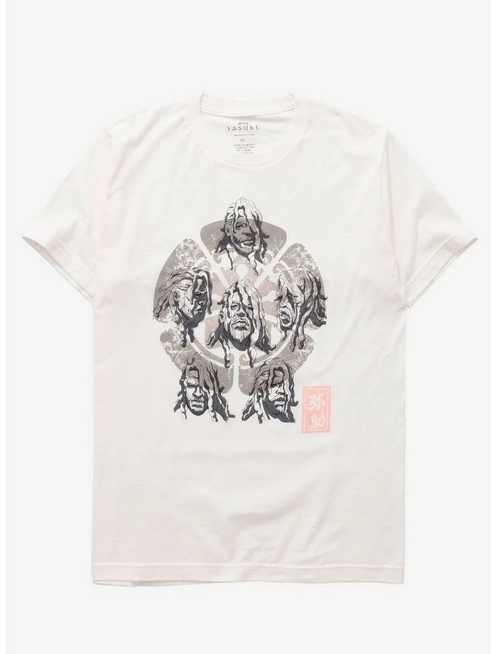 Loving Yasuke? Rep the Black Samurai with this tee! Features the Samurai himself making a variety of expressions on a faux-weathered background.